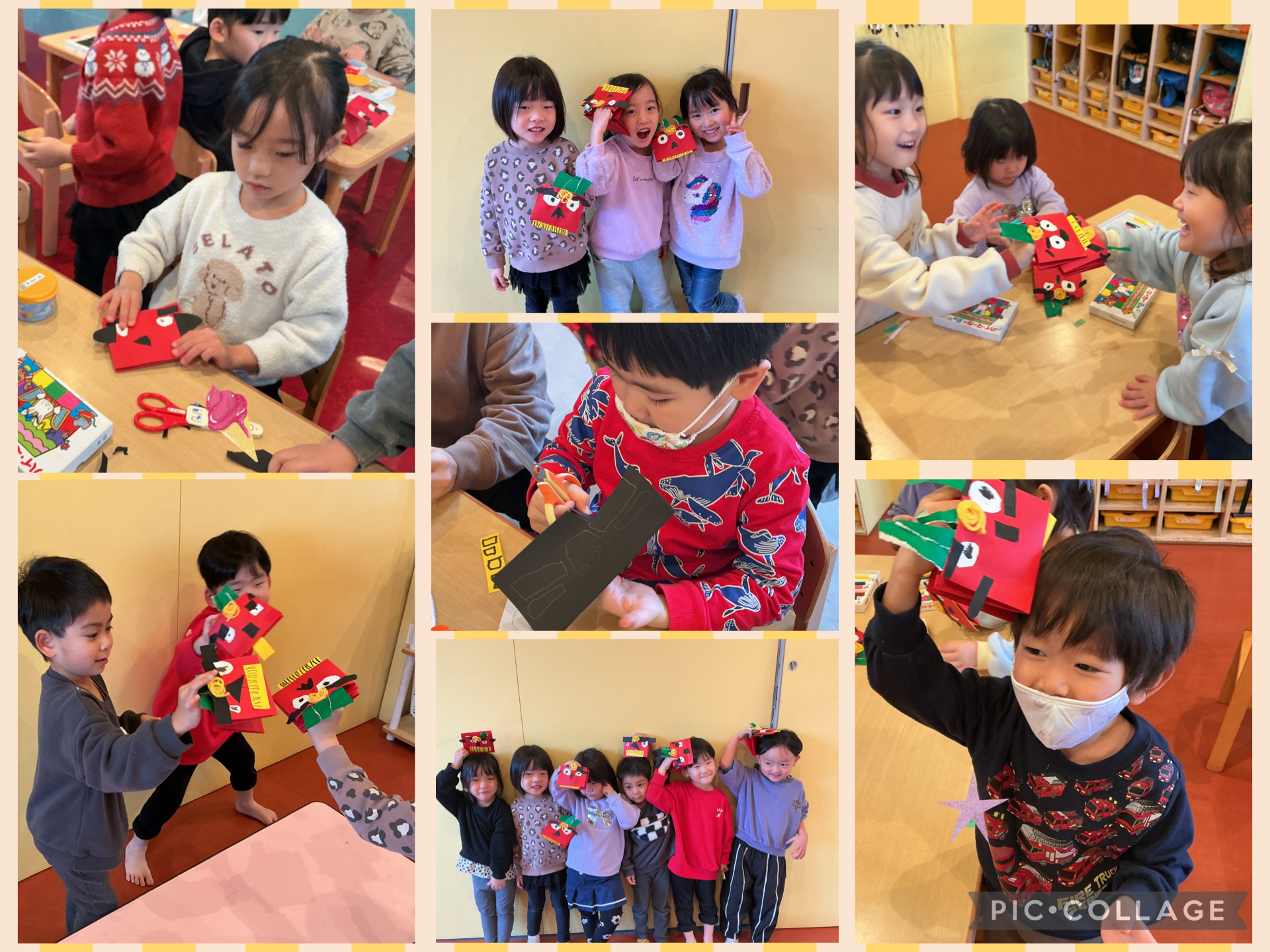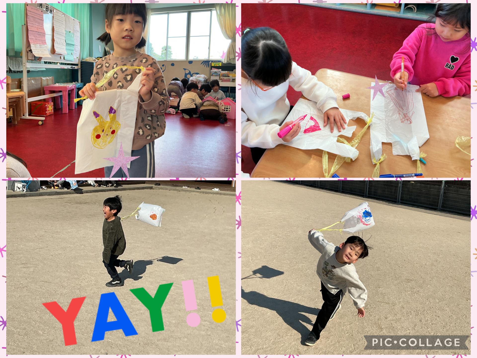 発表会の練習も頑張っていますが、凧揚げや獅子舞を作って遊んだり