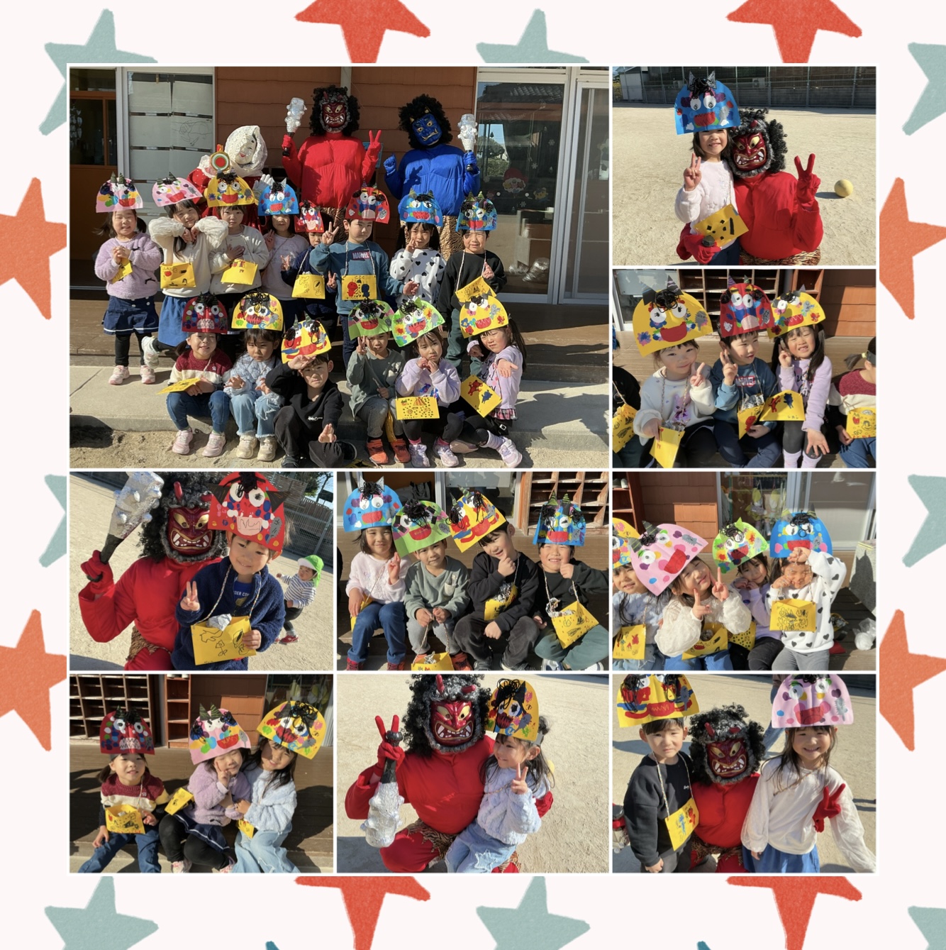 始まる前は、「倒すけん後ろに隠れていいよ!」「俺がやっつけるもん!」と気合十分でしたが、いざ鬼を前にするとびっくりする姿が見られましたが、終わった後はホッとした表情も見られ、季節の行事を楽しみながら経験することが出来ました★