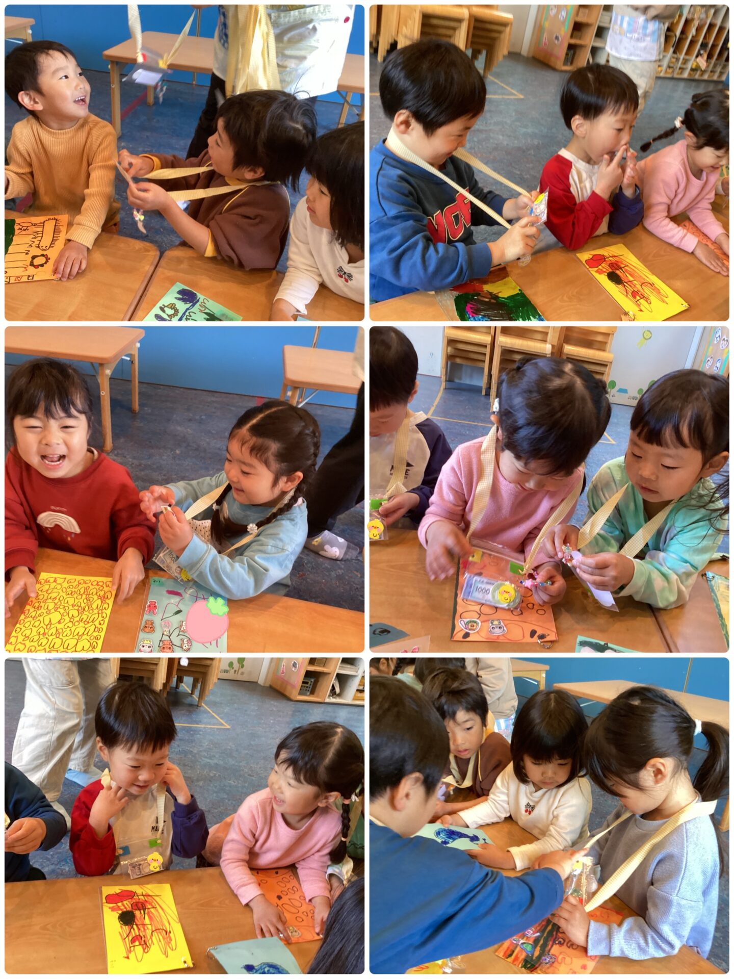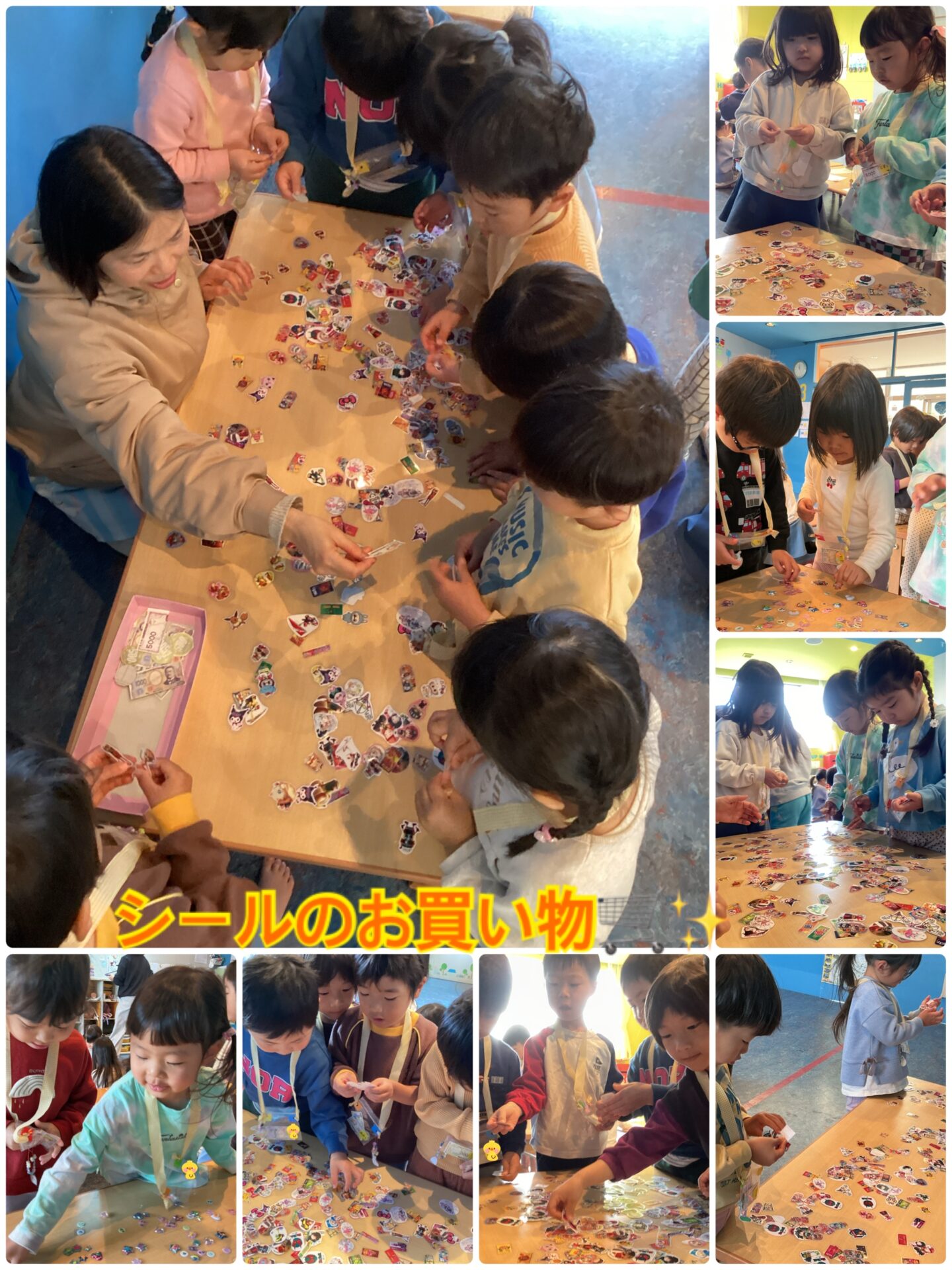 シール交換当日。毎日お当番という仕事を頑張っている子ども達に、〝給料〟という形で財布を渡し、シールを買ってもらうことにしました🛒