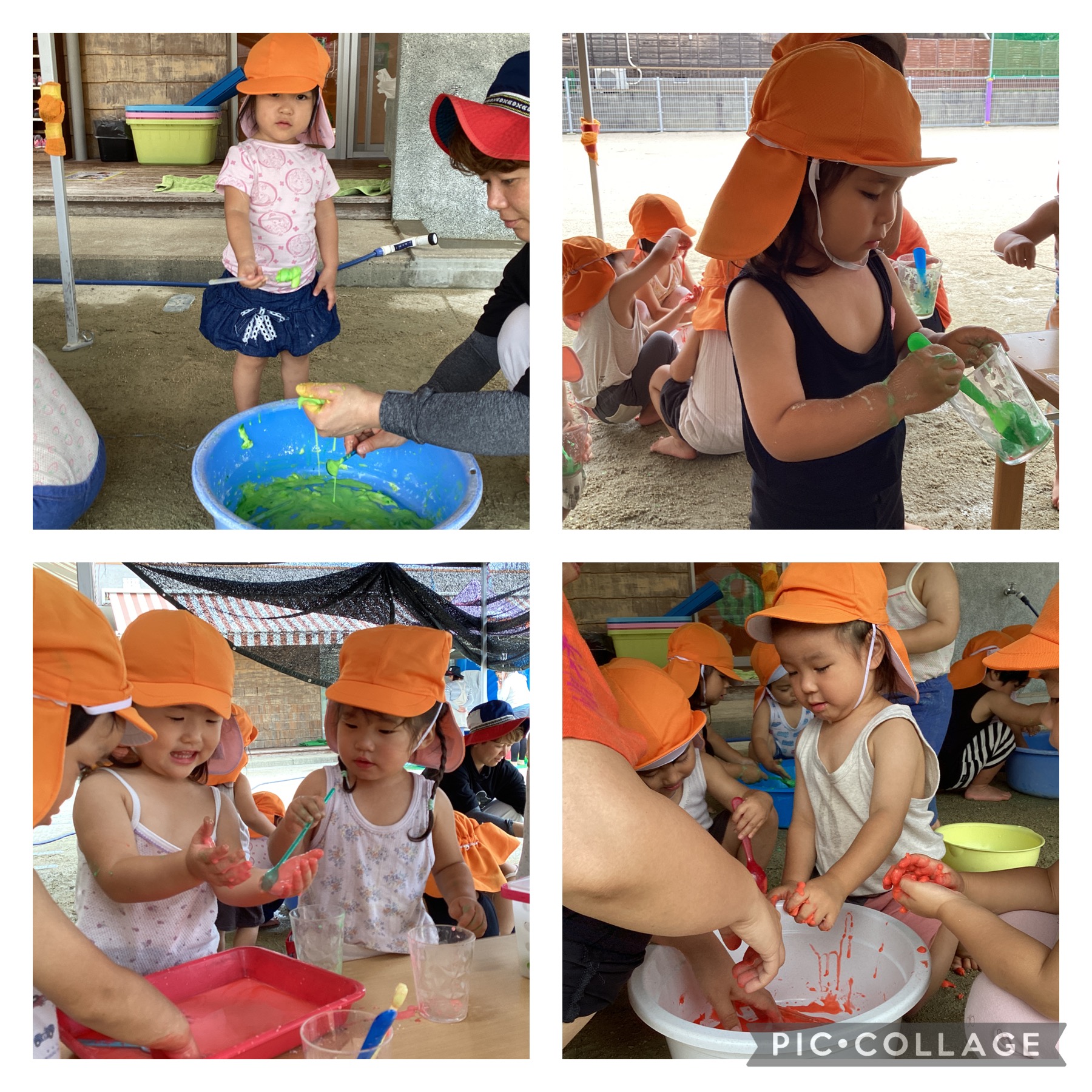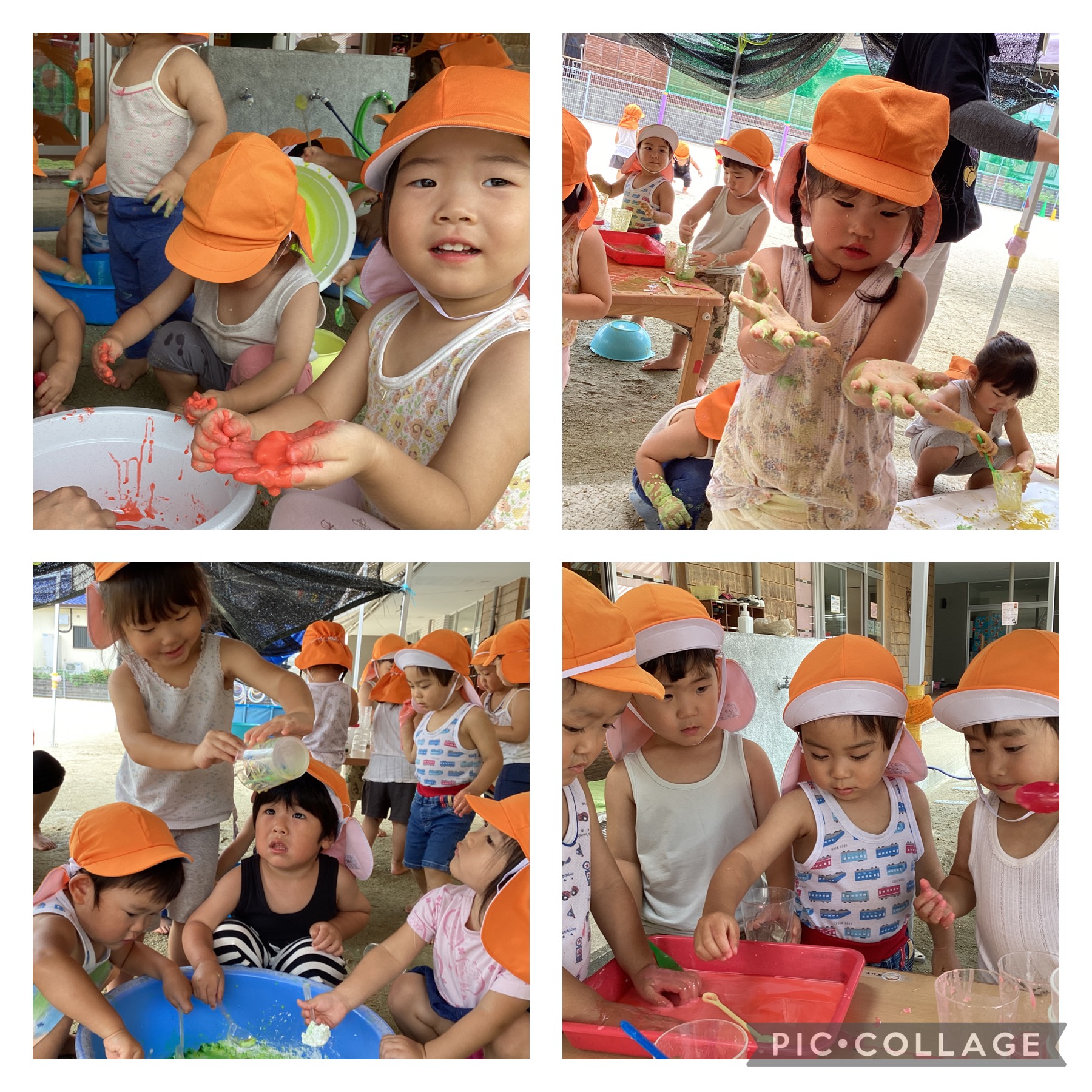 天気の良い日にはプール遊び,水遊び、泥んこ遊びや感触遊び等色々な遊びを楽しみました❗️