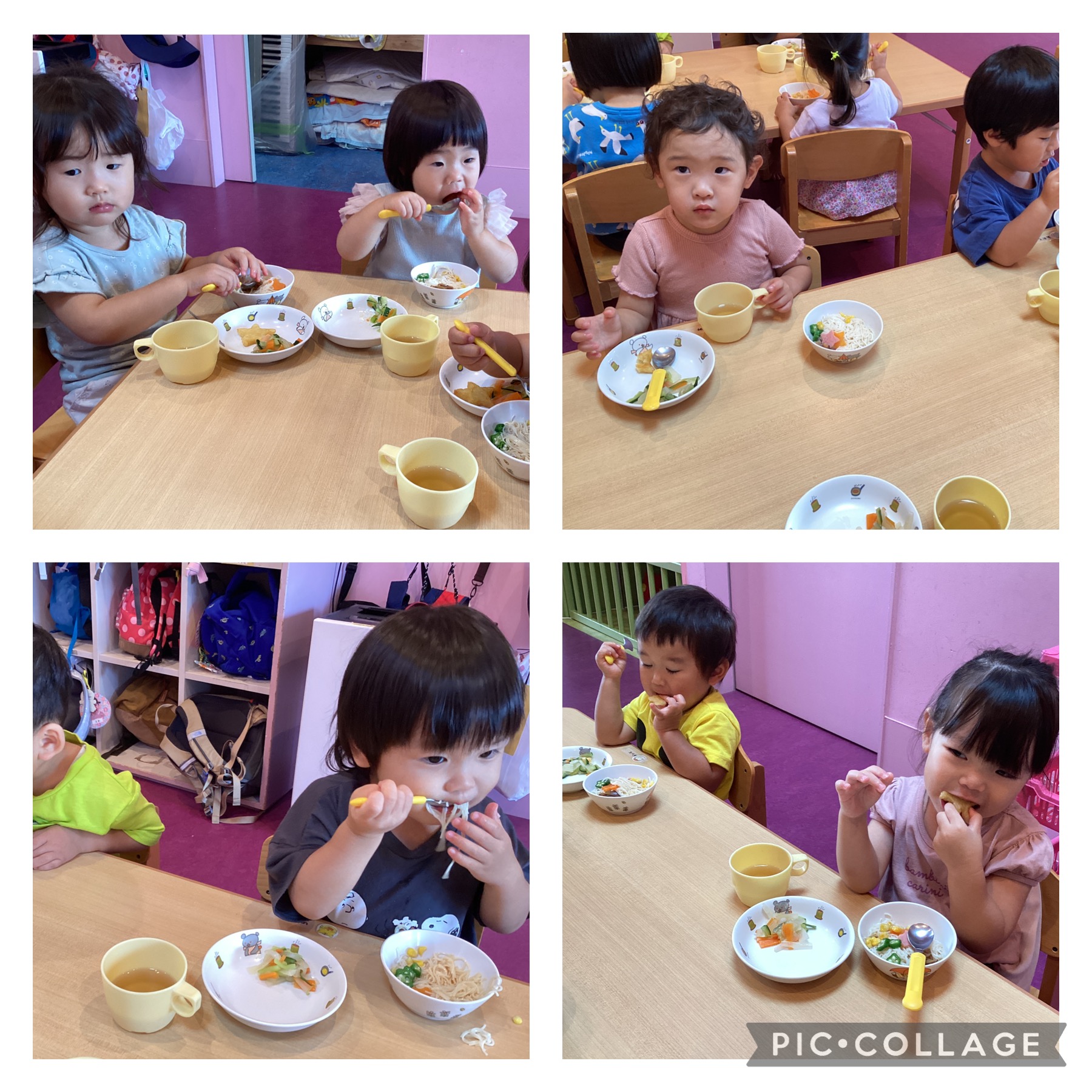また、七夕の日には給食に七夕素麺や星の形のポテトを出してもらい、美味しそうに食べていた子ども達です⭐️来月も夏ならではの遊びを楽しんでいきたいと思います🌴☀️