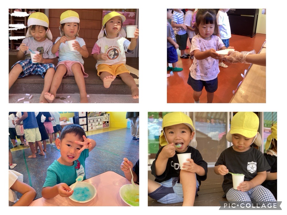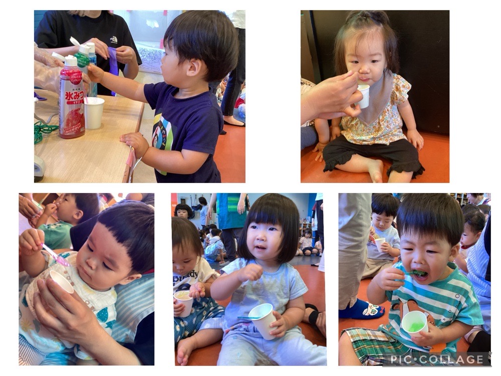 冷たい氷に驚きながらも、一口また一口と,口に入れていきます✨