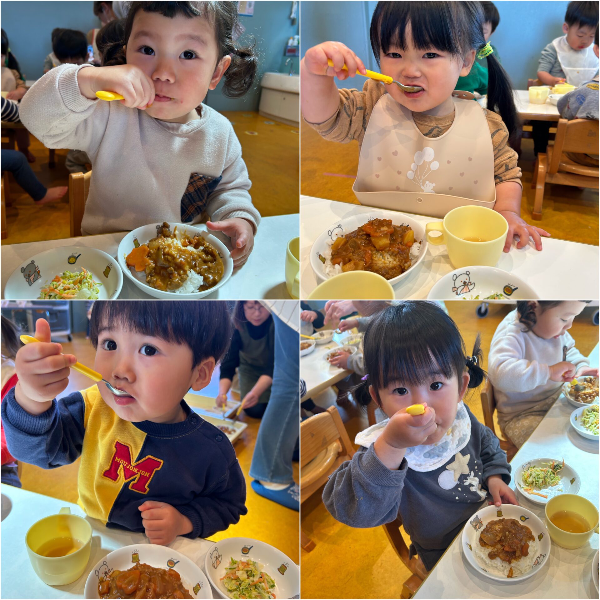 1年を振り返ると4月は、初めてのお友達、先生、環境にドキドキして、涙することもあった子どもたちでしたが、今ではみんなで元気に仲良く過ごす姿を見ることができ、とても嬉しく思います🍀