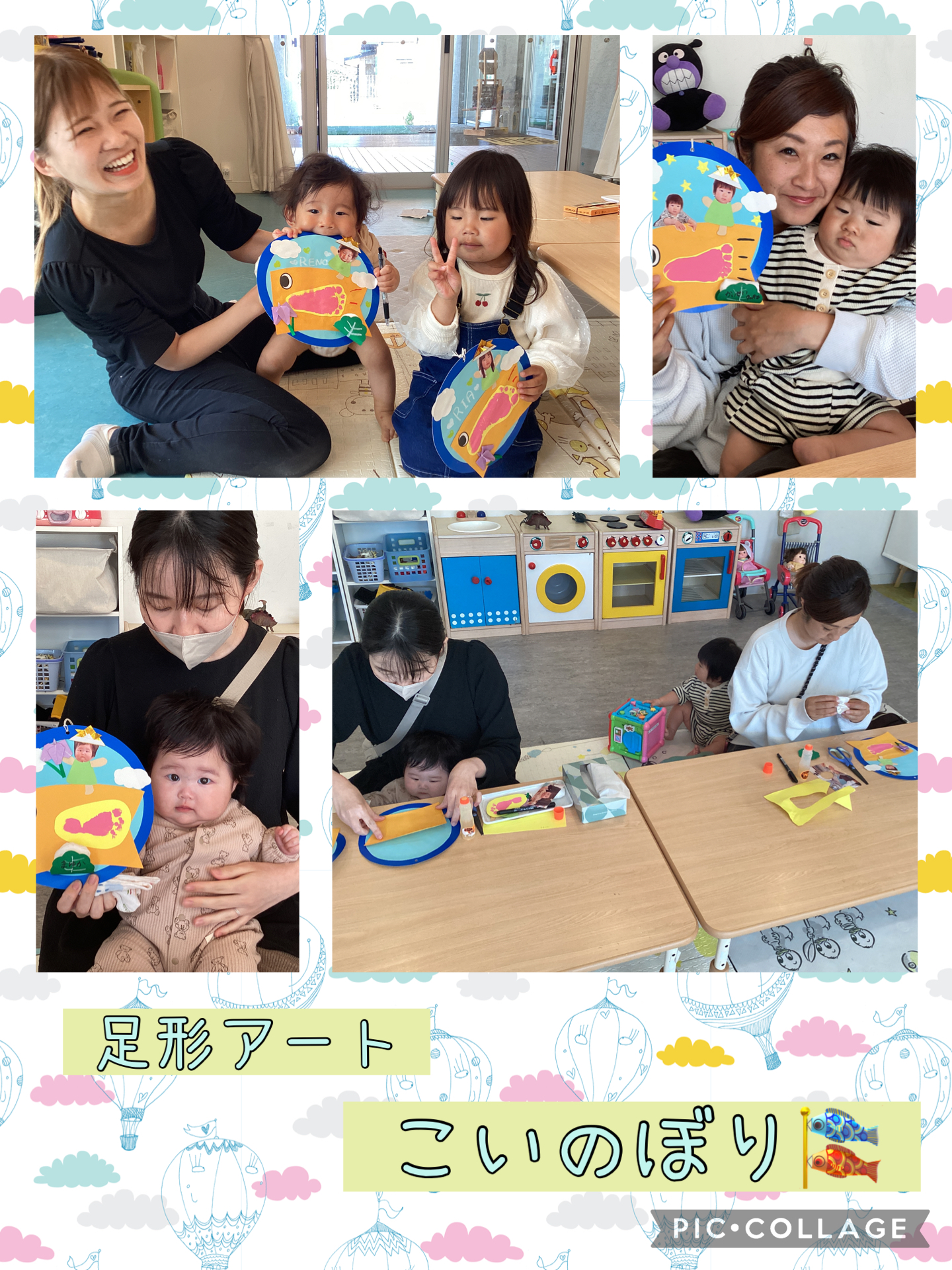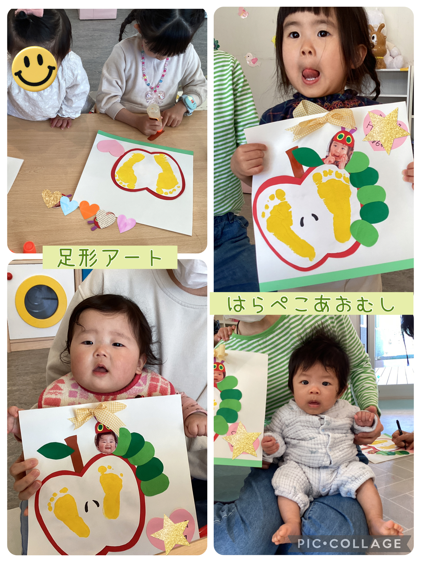 みんな嫌がらずに足形をとってくれました!👏とても可愛いあおむし🐛とこいのぼり🎏ができましたよ✨