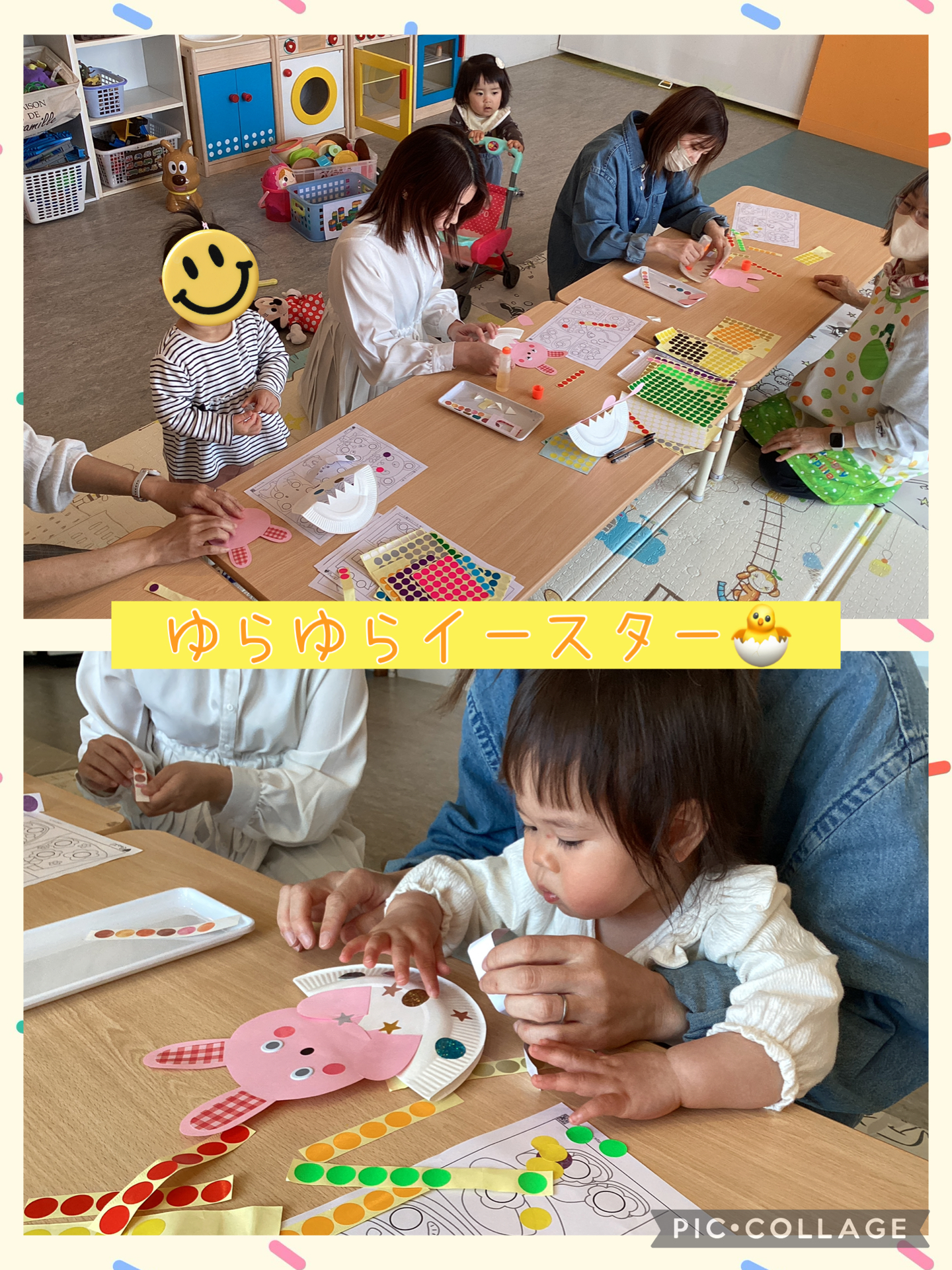 製作では紙皿を使ったゆらゆらイースターを作りました🐣