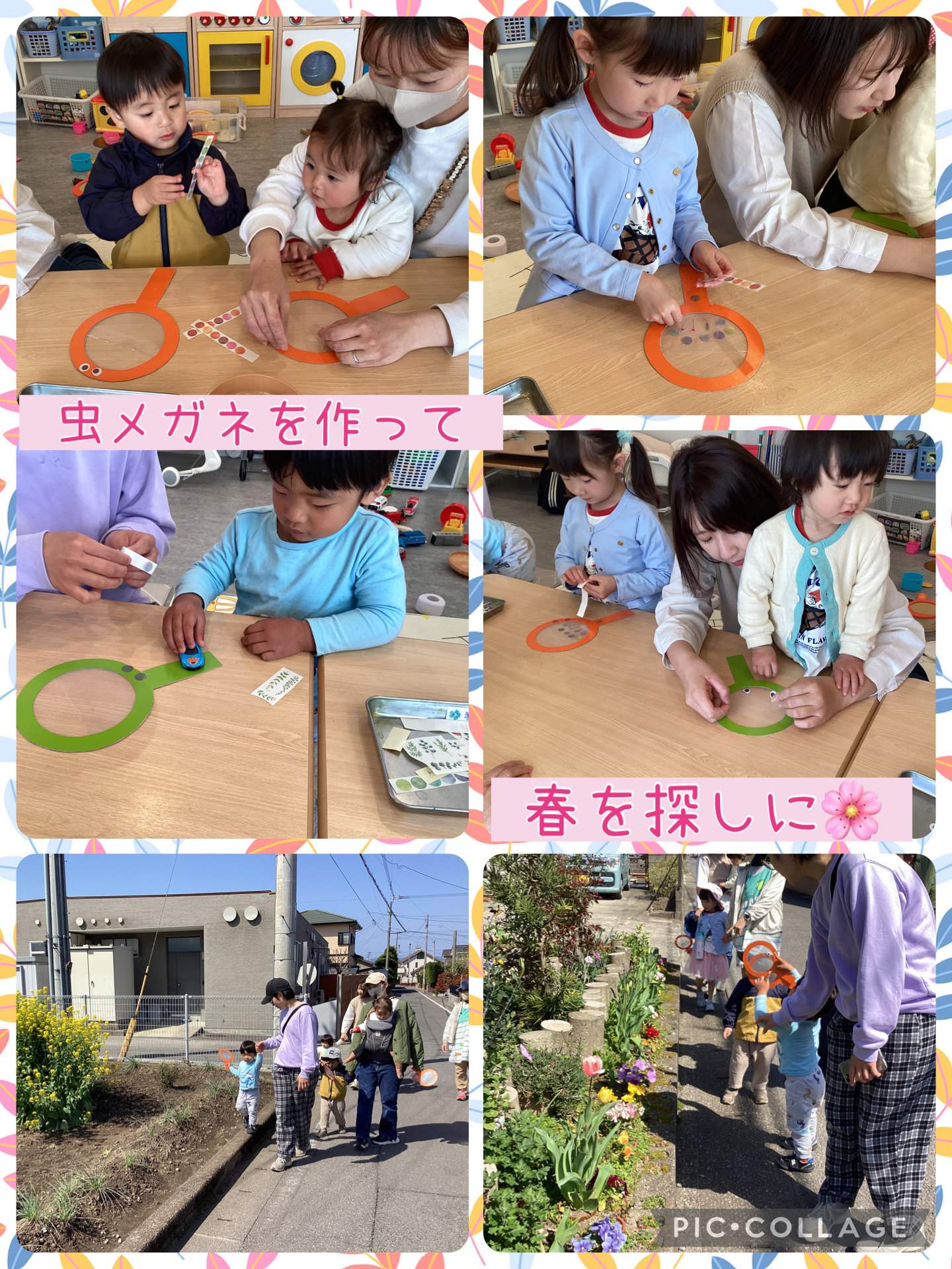 お散歩に行く前にポケット付きの虫メガネを作りました🔍お散歩の道中にたくさんの草花が♡たんぽぽや桜の花びらを、虫メガネのポケットの中に入れてお家に持って帰りましたよ🌸