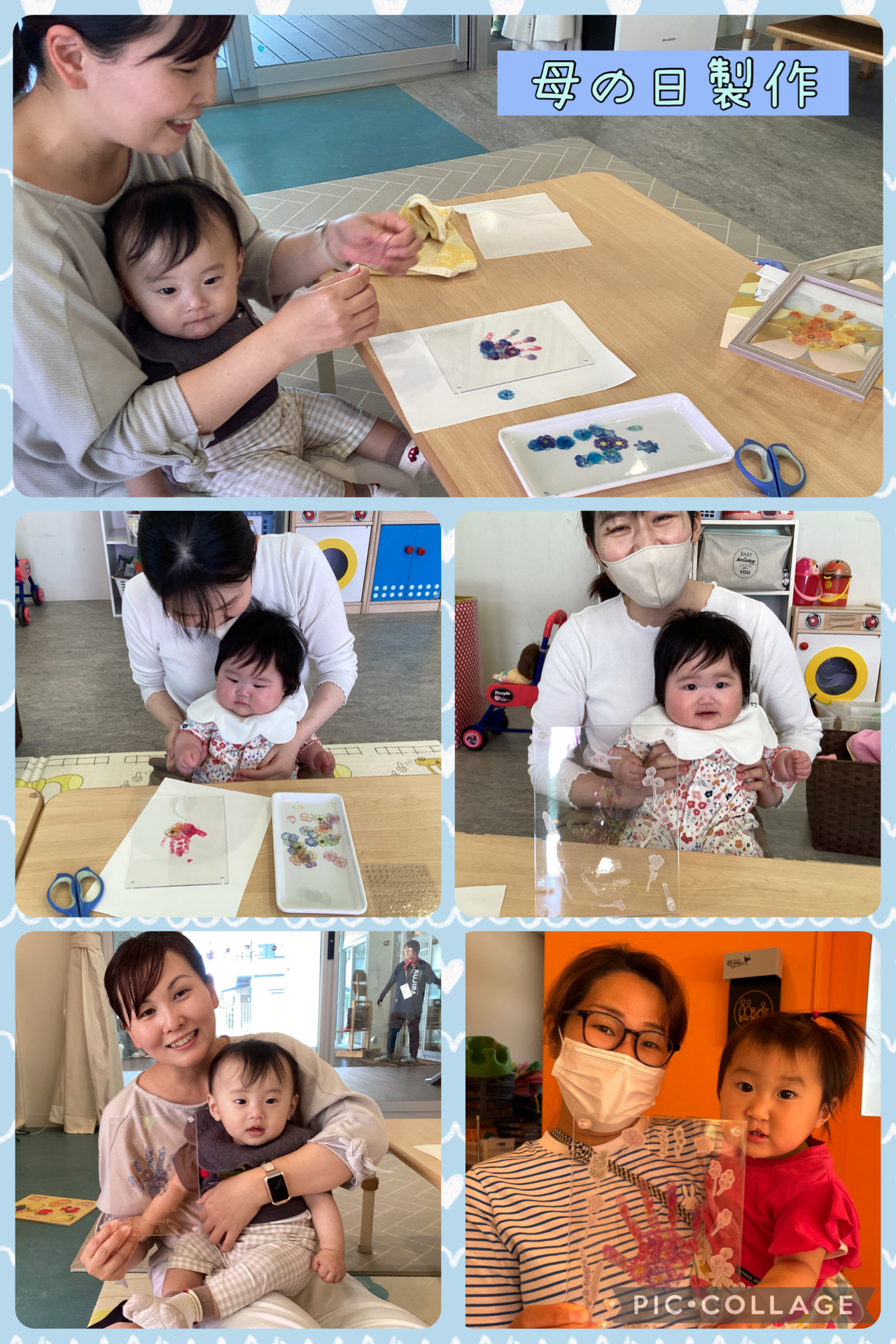 お子さんの手形にそってお花のシールを貼りました🌸お母さんたちの抜群なセンスでとても可愛い手形フレームが出来ました👏