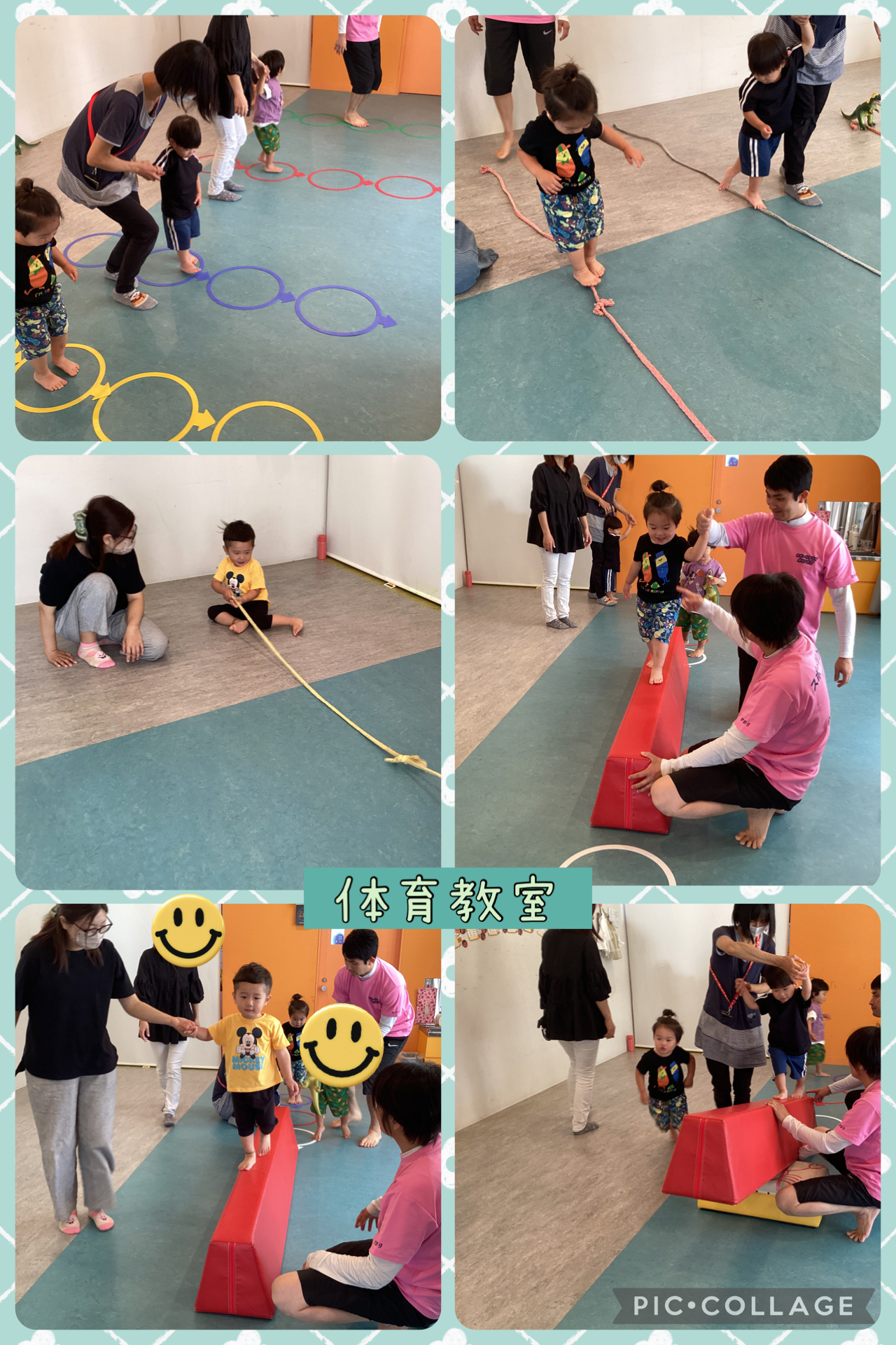体育教室ではロープや平均台を使って体をたくさん動かして遊びました☺️