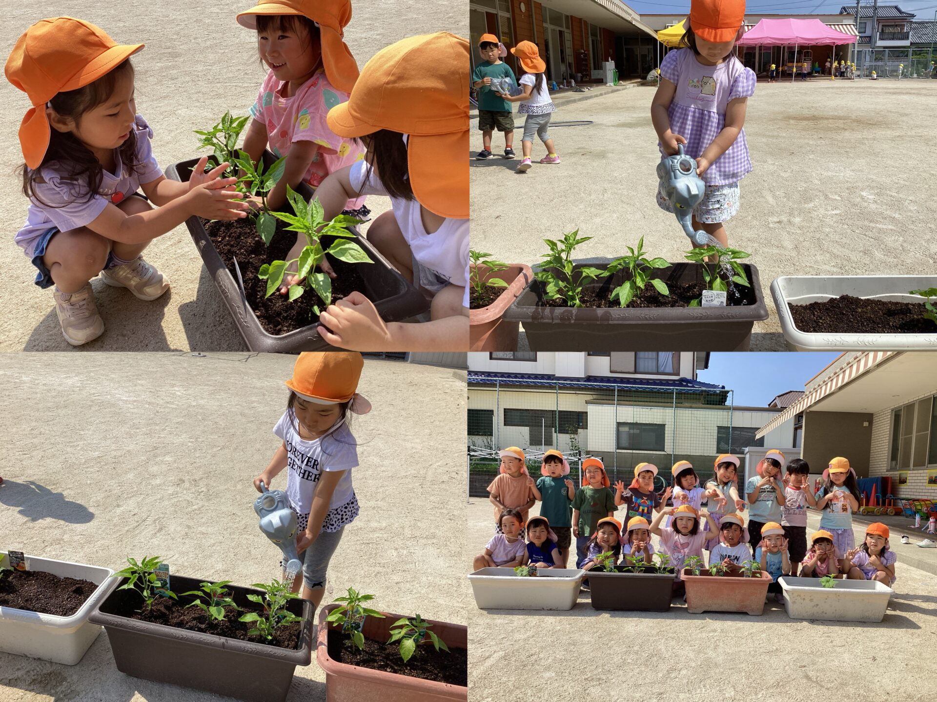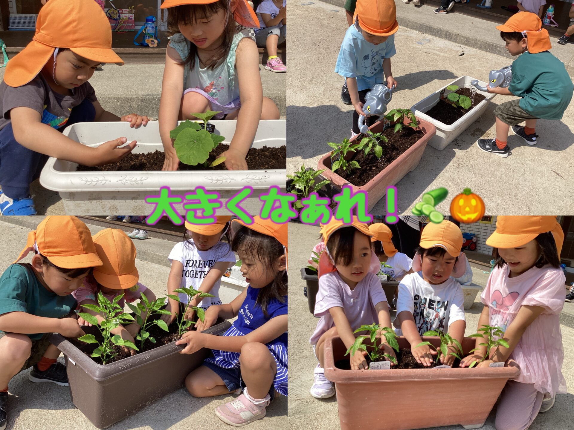 みんなで野菜(ピーマンとかぼちゃ)の苗を植えました!