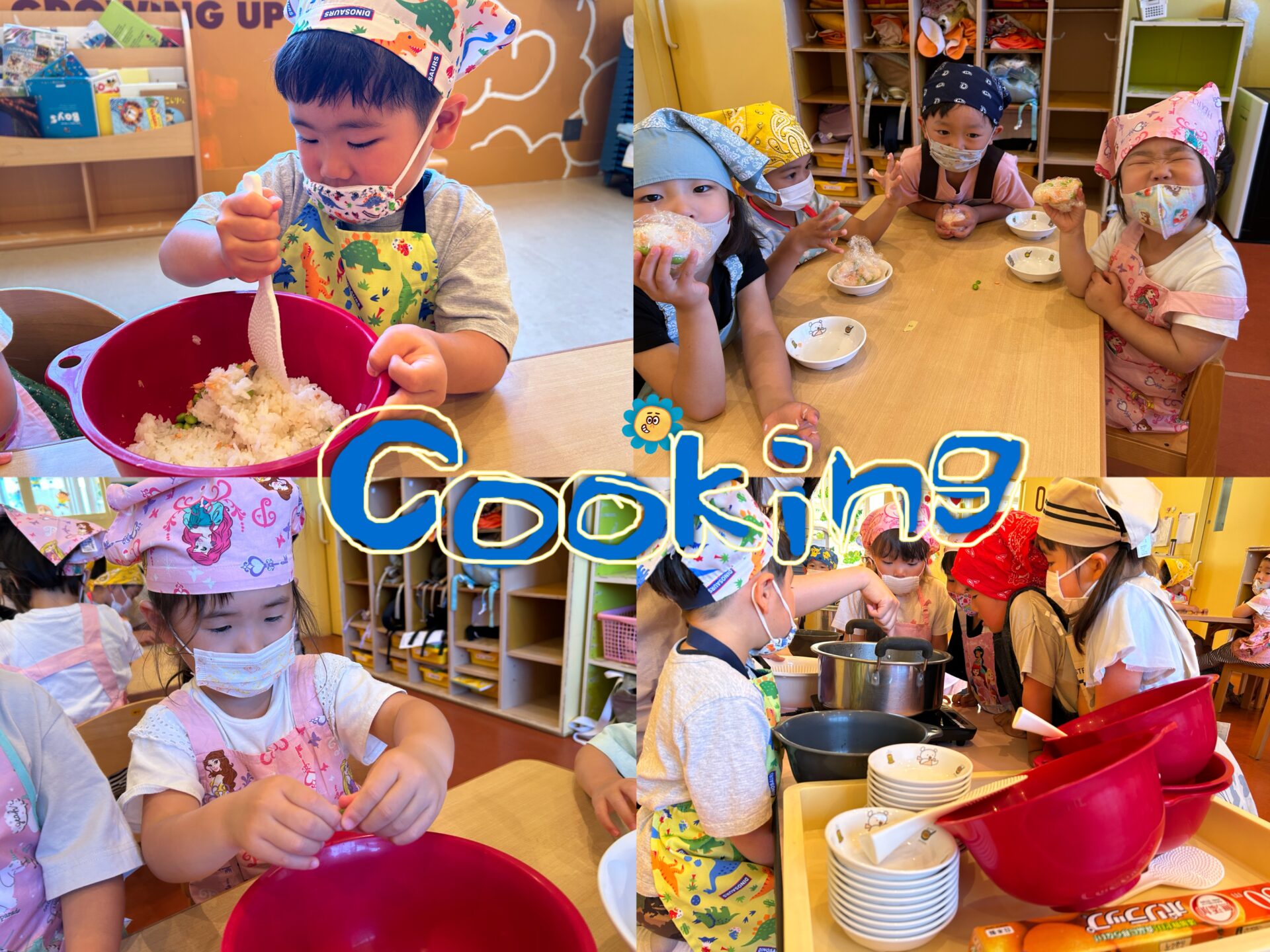 クッキングでは旬のもの・製作にも取り入れた“枝豆”を使っておにぎりを作りました🍙。