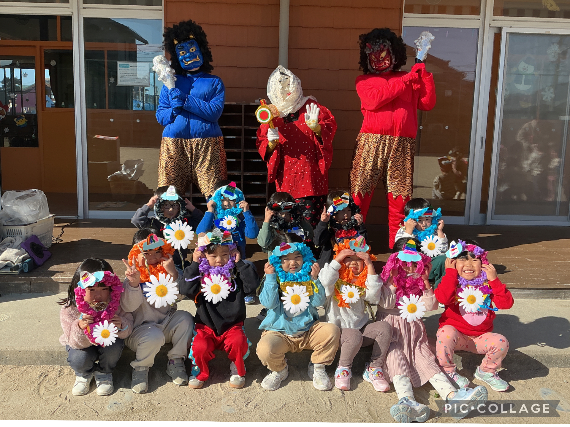 最後に鬼さんと福の神様と一緒に📷✨何とも言えない表情のこども達です😂
